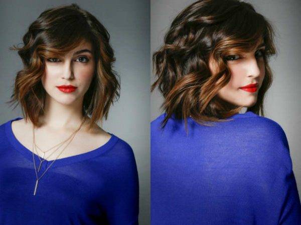 Прическа с длинной челкой на средние волосы