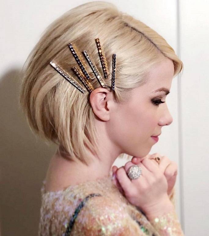 Модной укладкой коротких волос также станет прическа с зачесанными назад волосами. Создать ее можно своими руками, имея под рукой подходящие стайлинговые средства.