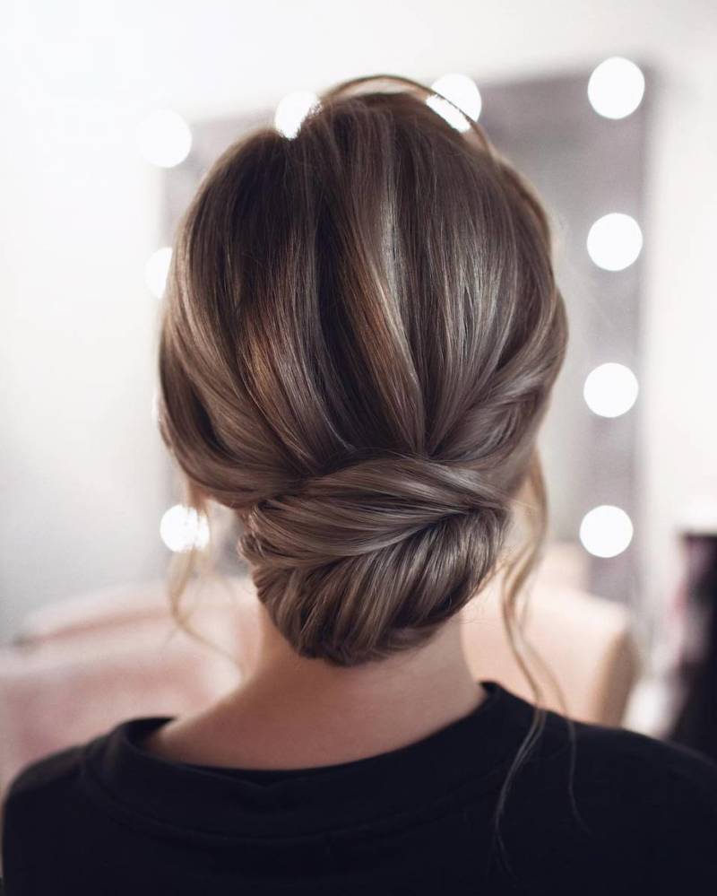 - Приподнимите волосы в зоне макушки, создавая объем. Стильная и минималистичная прическа на свадьбу готова!