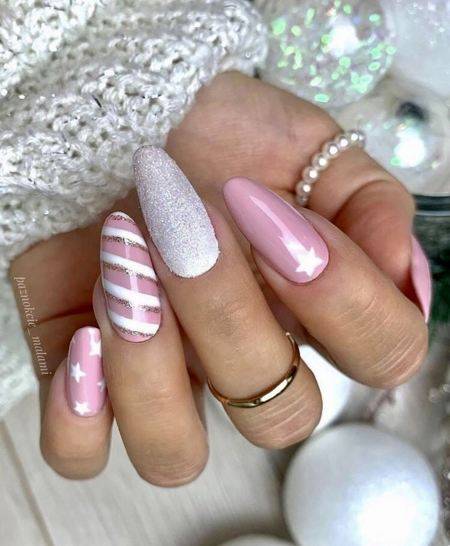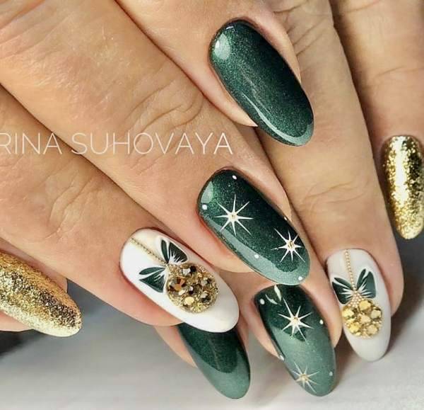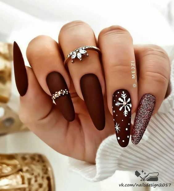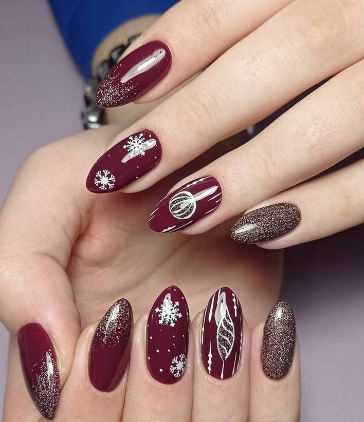 Самые популярные новогодние дизайны ногтей — это те, которые украшены блестками и металлическими акцентами. Выбранный вами новогодний дизайн ногтей должен идеально гармонировать со всем вашим нарядом.