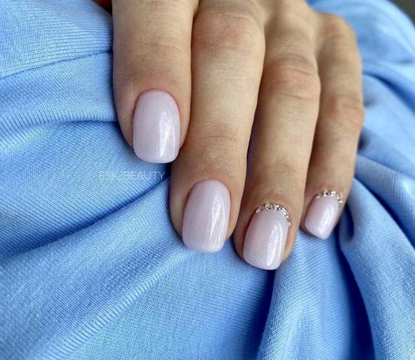 - Короткие. Эта длина остается в тренде, самыми удачными будут овальные и квадратные формы. На узкие ногтевые пластины можно сделать квадратную форму со сглаженными уголками. Закруглённый же квадрат подойдет всем. Овальная форма делает широкий ноготок более удлинённым.