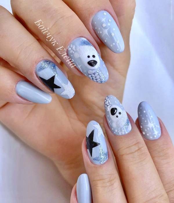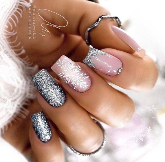 В этом праздничном Новогоднем сезоне, минималистичный дизайн прекрасно впишется в любого цвета Новогодний наряд. Очень стильно и легко будут смотреться пастельные цвета с небольшими акцентами в виде рисунка снежинки, нескольких аккуратных страз или каплей блесток.