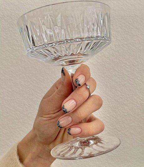В этом Новогоднем сезоне французский маникюр тоже должен сиять и блестеть. Поэтому, френч нужно украшать фольгой, блестками и стразами.