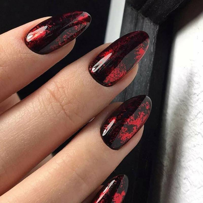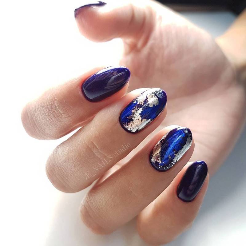 Такой маникюр сейчас очень актуален для поклонниц тёмных оттенков на ногтях.