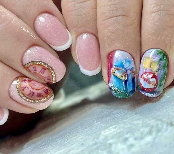 Модный дизайн для новогоднего маникюра 2022