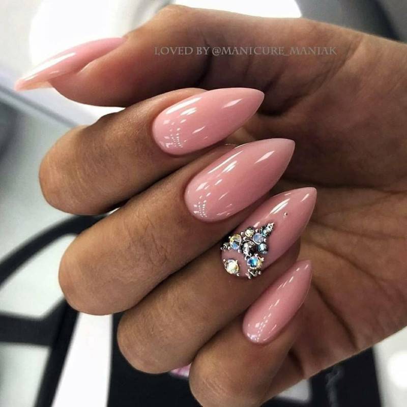 - Стилет. Длинная заостренная форма не подойдет, если вы много занимаетесь домашними делами. Формируется «стилет» с нуля методом наращивания.