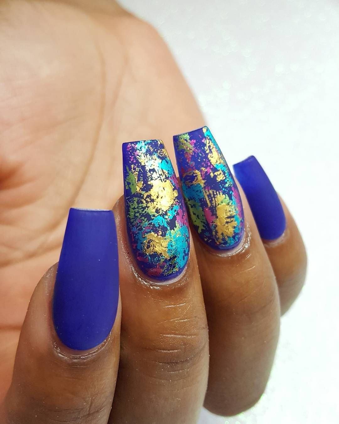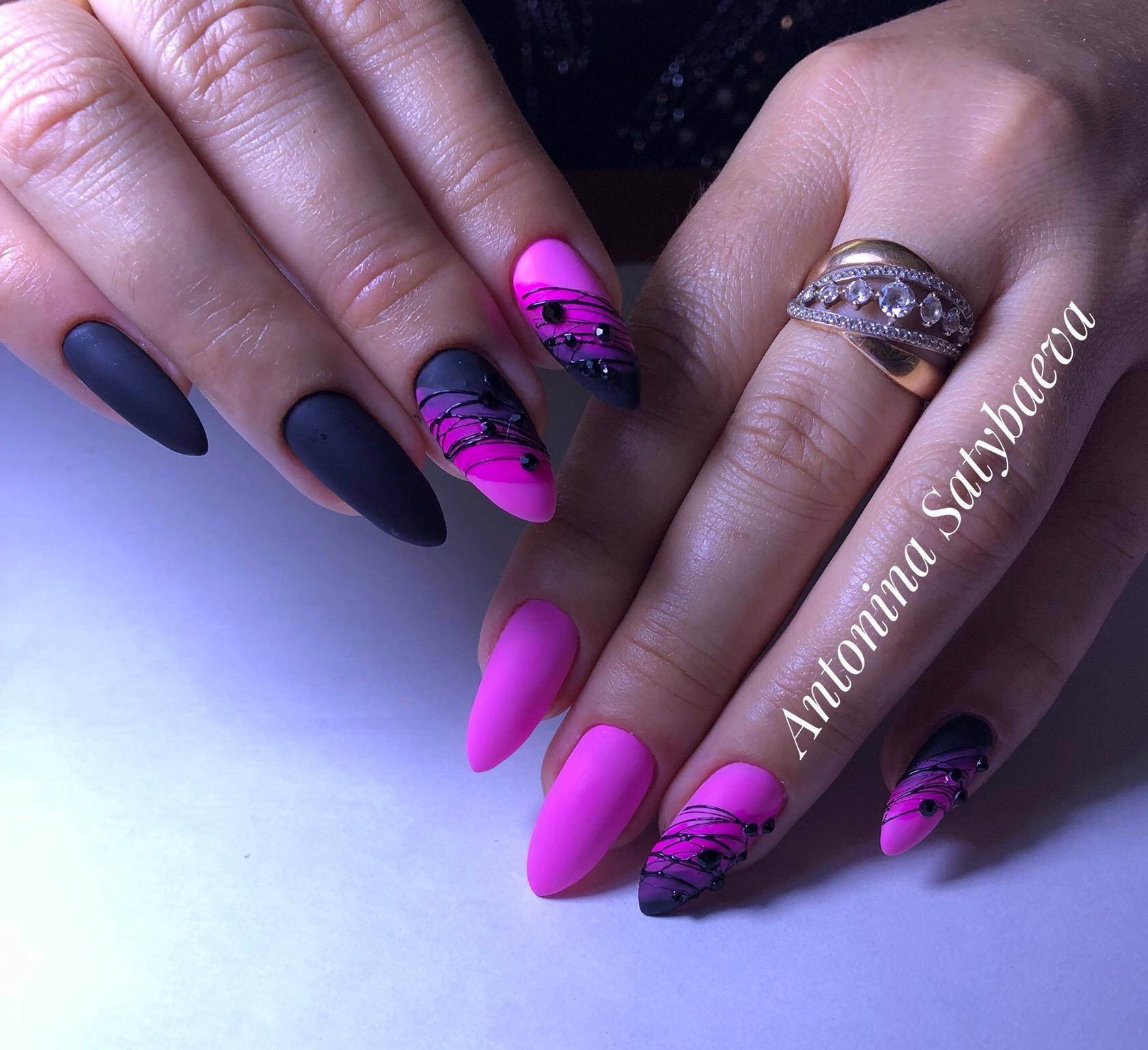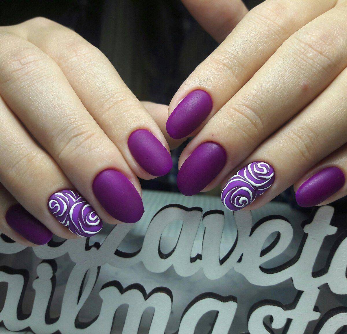 Сейчас часто лучшие мастера маникюра предлагают сочетание матового покрытия и насыщенного градиента на ногтях.