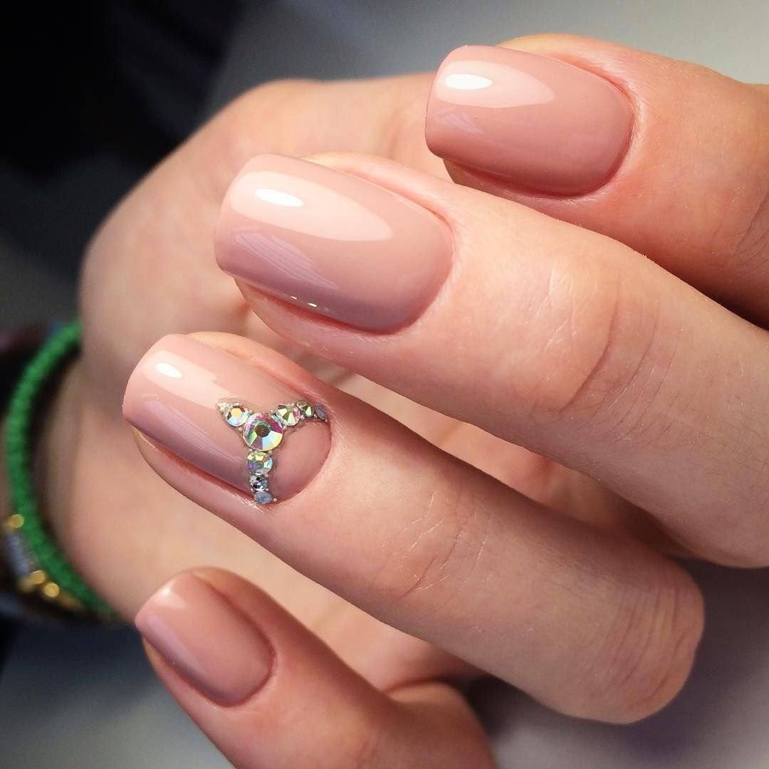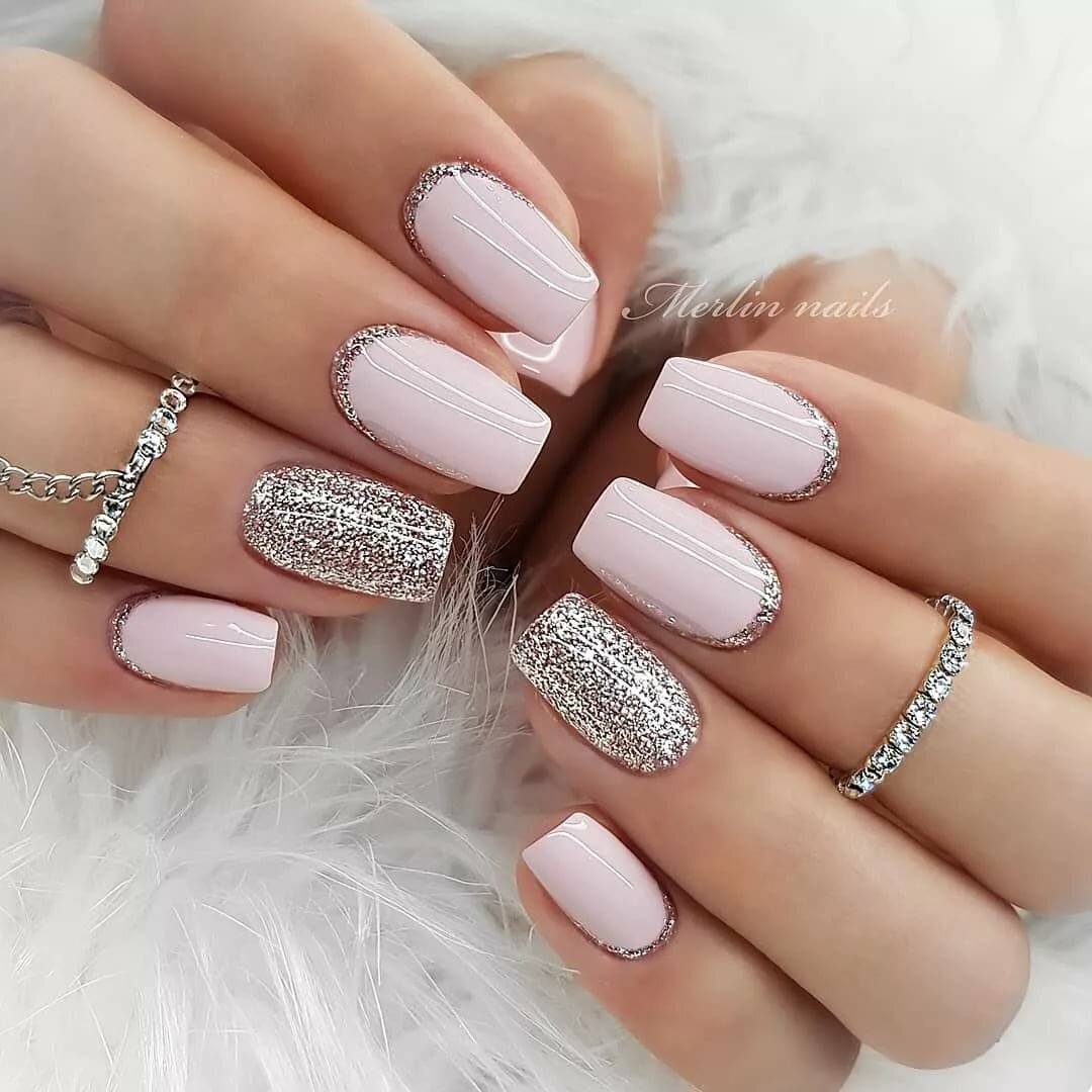 Также, очень празднично и нежно будут смотреться нюдовые ноготки с блестками и рисунками.