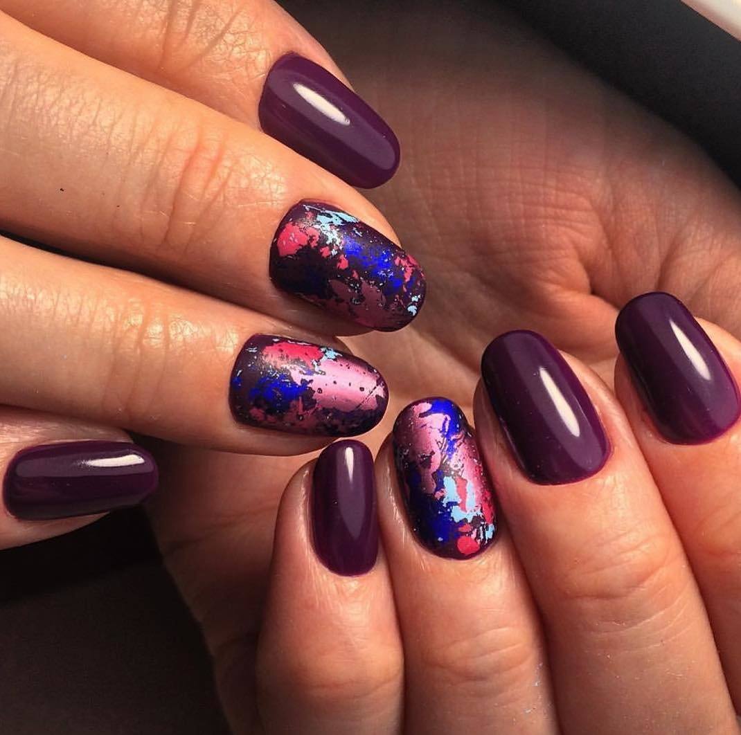 Такой маникюр сейчас очень актуален для поклонниц тёмных оттенков на ногтях.