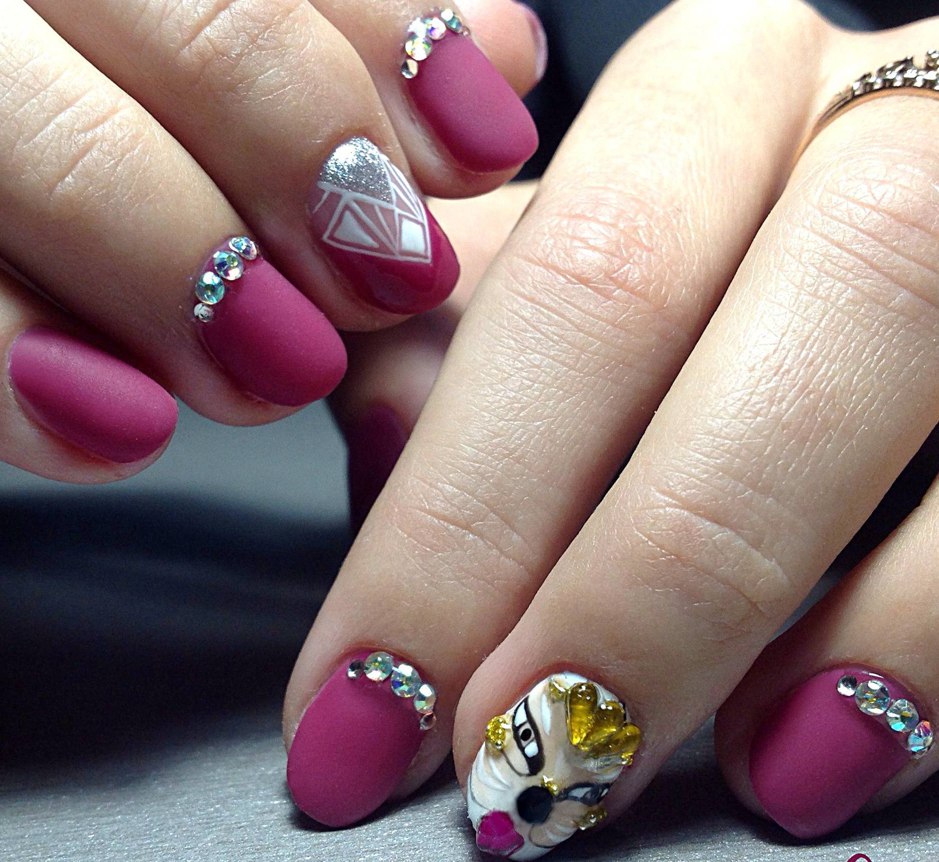 В этом сезоне, можно дать волю своей любви к всему блестящему и оторваться на полную катушку. Ведь даже символ года нам об этом говорит, своими яркими тигристыми полосками. Поэтому, девочки, в этом году не сдерживаемся! И добавляем на свои ноготки столько блесток и страз, сколько наша душа пожелает.