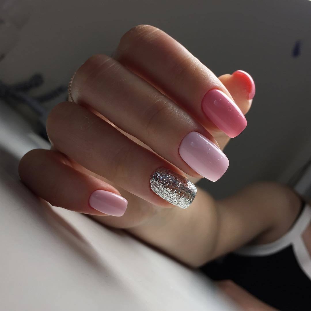 Если хочется красивых переходов на ноготках, то смело делайте градиент. Кроме того, в этом праздничном сезоне очень модно поверх цветного градиента, дополнительно делать легкую растяжку серебряными блестками. Это выглядит очень стильно и нарядно.