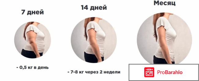 сбалансированное питание вкупе с биоактивной добавкой гарантирует недельно снижение веса от 2 до 4 кг. Кушать необходимо часто, по часам и маленькими порциями. Заменив один из приемов пищи употреблением коктейля, можно снизить калорийность суточного рациона. Придерживание строгих диет крайне не рекомендовано.