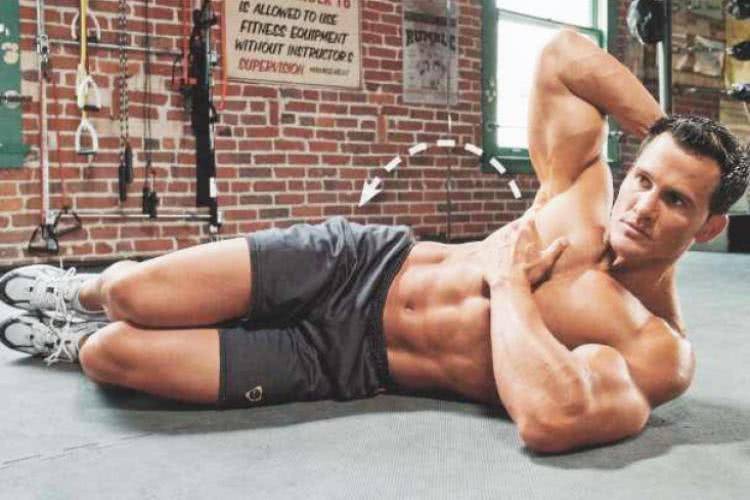 Руки заложите за голову и поочередно старайтесь дотянуться левым локтем до правого колена и наоборот. Ноги в свою очередь не должны быть зафиксированы – колено подтягивайте к соответствующему локтю.