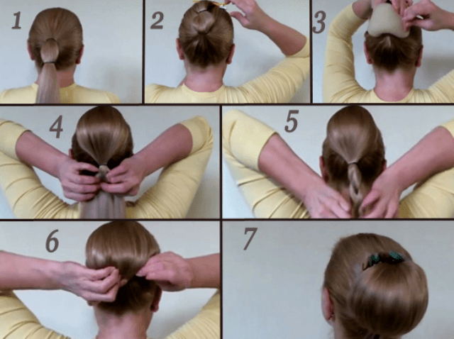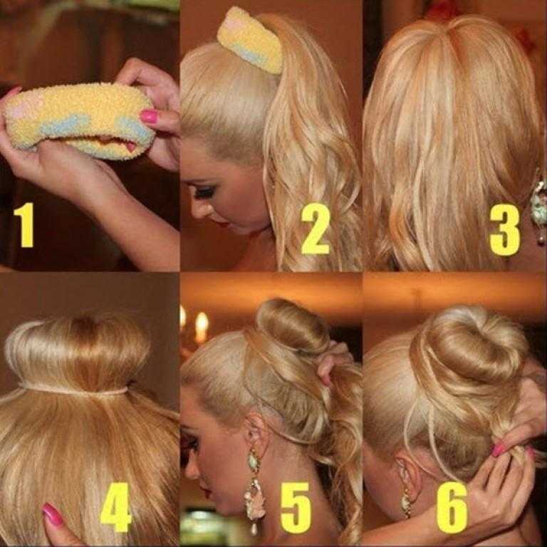 - для короткой стрижки с поролоновым бубликом или шиньоном;