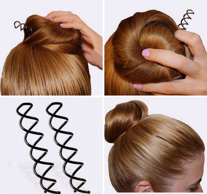 Помогут гораздо быстрее сделать красивую и стильную прическу. - Обязательными атрибутами такой прически являются дополнительные аксессуары в виде шпилек, невидимок и резинок для волос.