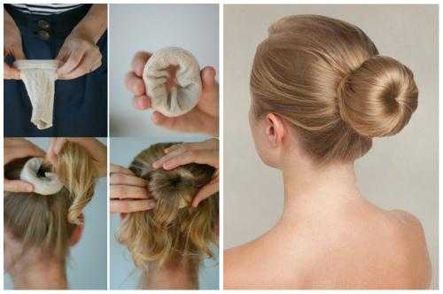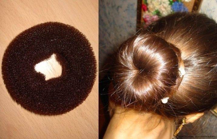 - Бублик – специальный парикмахерский аксессуар в виду круглой подушечки с отверстием по центру. Его можно приобрести в магазине или изготовить своими руками из поролона и капронового носочка или гольфа.