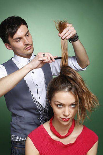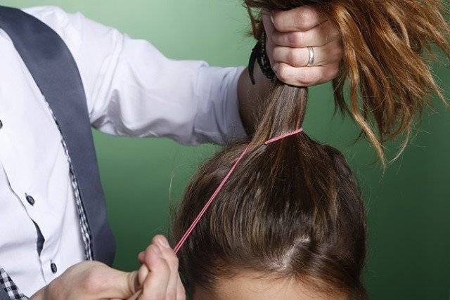 Пряди на голове рекомендуется тщательно расчесать, а затем собрать в высокий хвост на макушке.