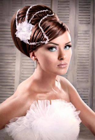 Такой вариант бабетты подходит для средней и длиной шевелюры. Если нужна праздничная прическа, хорошим дополнением станут ажурные заколки или диадема.