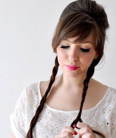 - также можно создать любой вид французской косы, и проплести ее сбоку, кончиками пряча в начес и т.д.