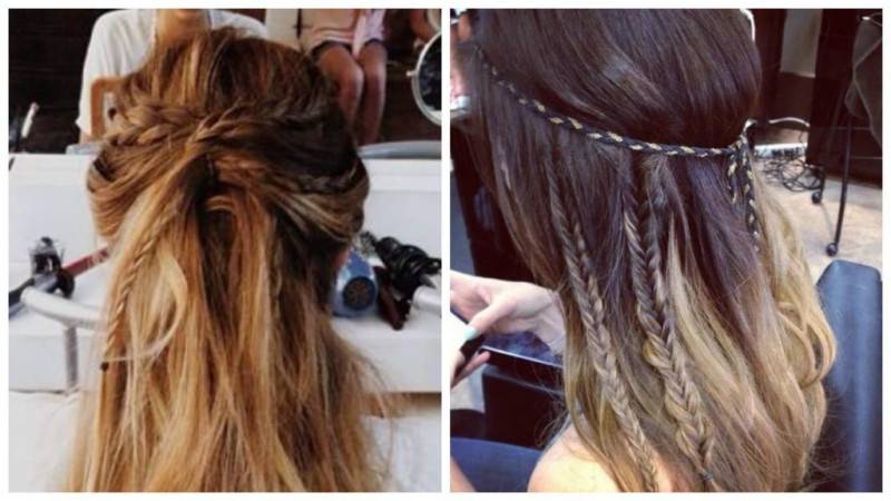 Если волосы длинные и непослушные, поможет коса, свободно заплетенная от затылка на бок, или прямая объемная. Здесь верхняя часть может быть слегка растрепанной и пушистой. Девушки сочетают распущенные волосы с несколькими тугими плетениями в верхней части головы. Красиво смотрятся 2 косы, заплетенные от ушей.