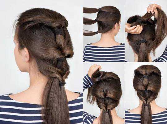 Передняя часть начесывается и приподнимается, а задняя завязывается в очаровательный хвостик.