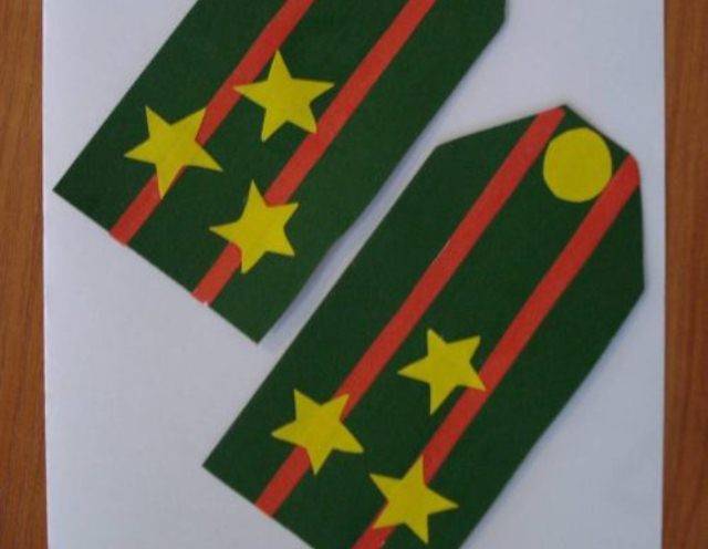 Вырезаем оба погона и оставляем до полного высыхания. Осталось только склеить погоны между собой и можно дарить любимому папе подарок на 23 февраля.