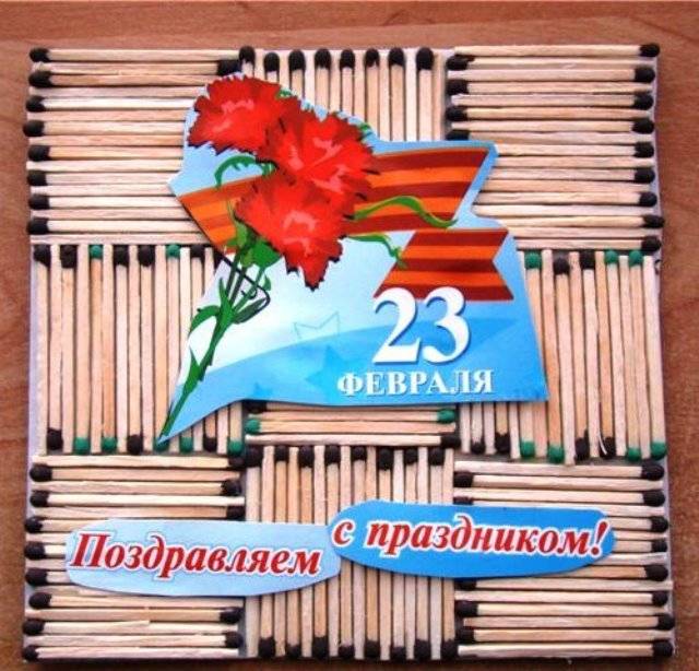 Можно сделать с маленьким ребенком оригинальную открытку с символикой и поздравлением для папы.