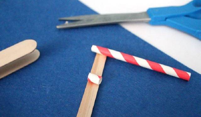 Из трубочки для воды отрезаем два кусочка, длина которых равна высоте каркаса.