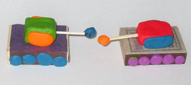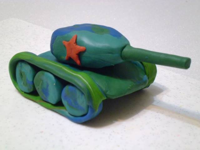 Из пластилина или массы для лепки можно сделать с малышом почти настоящий танк.
