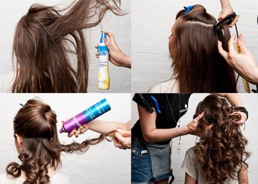 - Готовую прическу слегка приподнять руками и сбрызнуть укладочным средством.