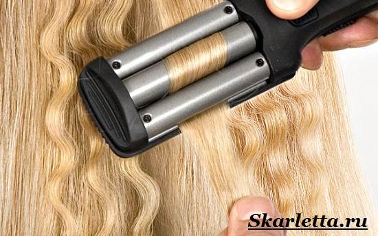 Понадобится либо плойка с диаметром от 1 до 3 см, либо специальное устройство для создания гофре. Перед использованием приборов нужно вымыть и высушить волосы, и нанести на них термозащитное средство. Копну следует разделить на пряди толщиной в 0,5 см, и завить плойкой. Обрабатывать локоны нужно от затылка к макушке, держа устройство в вертикальном положении. В конце следует слегка поправить прическу пальцами, и зафиксировать результат лаком.