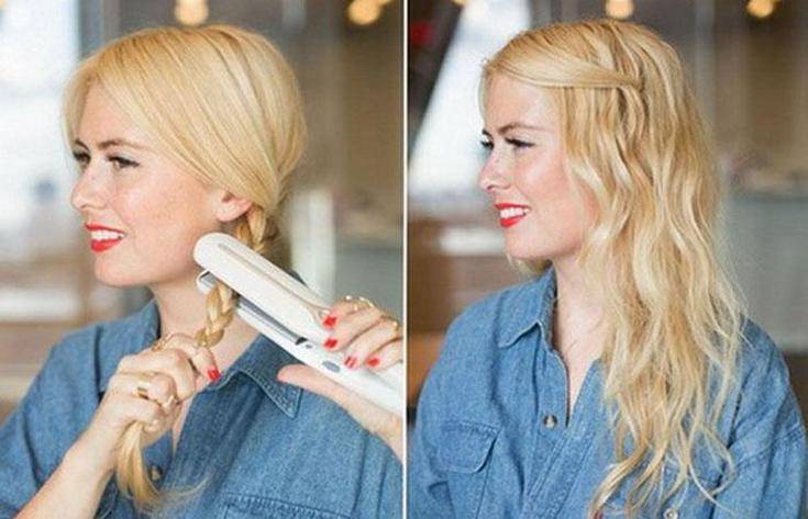 - Второй способ достаточно прост и дает такой же эффект, как от косичек, но для этого вам не придется ходить с ними целый день. Все, что вам нужно, заплести шевелюру в косы (они не должны быть ни тонкими, ни толстыми) и нагреть каждую из них утюжком в течение минуты. Готовые кудряшки нужно слегка распушить руками и зафиксировать лаком.