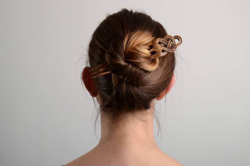 Резные заколки — это аксессуары, которые могут быть использованы как основная декорация или добавлены к другим аксессуарам, таким как ленты или банты. Они могут быть изготовлены из различных материалов, таких как дерево, кость или металл, и добавляют пучку дополнительную сложность и уникальность.
