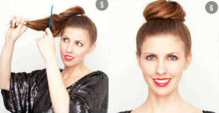- Шаг 6. Начесанный хвост уложите в простой пучок, просто обмотав волосы вокруг резинки. Закрепите кончики хвостика при помощи невидимок или шпилек.
