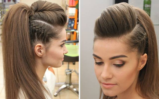 Такая высокая прическа будет не только актуальна для делового ужина, но и станет дополнением к праздничному образу. Достаточно украсить ее декоративными аксессуарами, например, ободком со стразами, зажимами или шпильками. Также можно сделать высокий хвост, но не простой, а с пышным начесом.