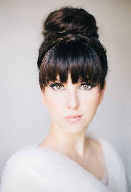 Прическа ракушка более выгодно сочетается с длинными челками, но и короткая челка не повод от нее отказываться. Лучше всего пряди челки уложить на бок либо забрать в начес. Конечно же челка лучший корректор для черт лица, но вот ракушка намного изысканней смотрится без нее.