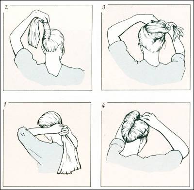 - Теперь соберите волосы в хвост на затылке и скрутите жгут. Вы можете самостоятельно регулировать его тугость.