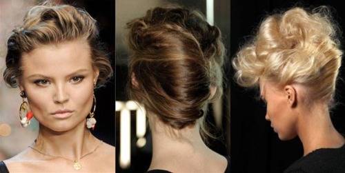 Способ укладки и процедура действий такая же, как и для классического пучка, вот только использовать мусс или пенку не рекомендуется. Выравнивать локоны с помощью выпрямителя тоже не надо. Весь секрет этой очаровательно небрежной прически – в волнистых кудрявых волосах, так что, она не потребует лишних процедур с волосами.