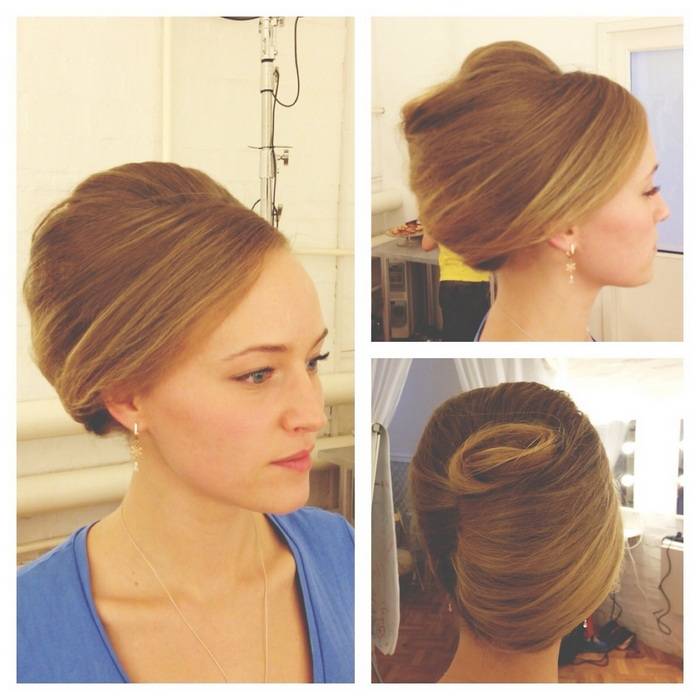 - Складывайте задние пряди в элегантный пучок с небольшим начесом.