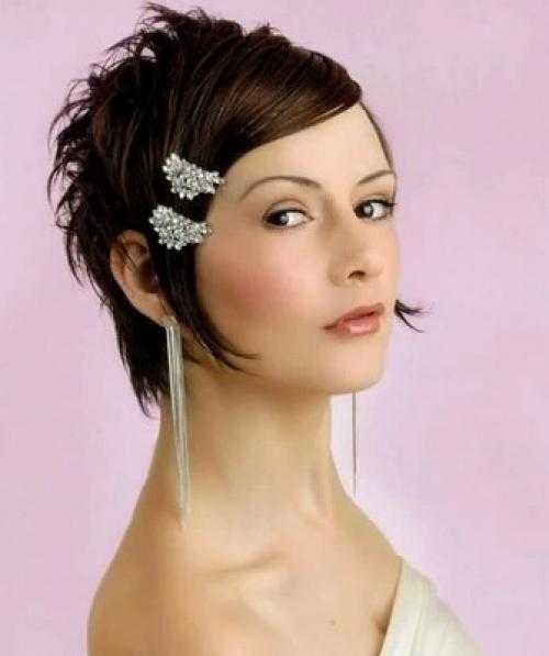 На фото – прически на короткие волосы с заколками типа «автомат», ведь даже короткую стрижку можно модернизировать с помощью простых аксессуаров: