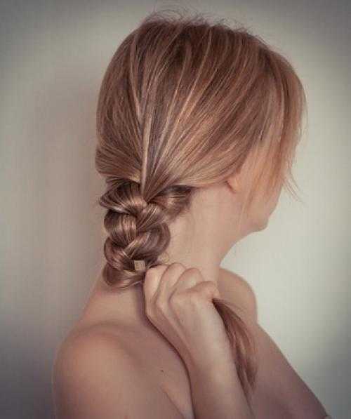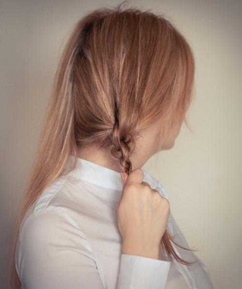 - Заплетите косу-колосок, начиная от затылка, но немного сбоку