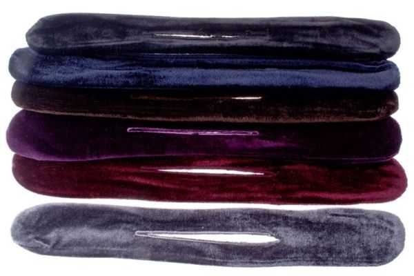 В целом конструкция этой интересной заколки довольно проста. Она сделана из мягкой проволоки, которая легко сгибается даже при минимальных усилиях. Сверху ее порывает ткань разной фактуры. Это может быть как обычный однотонный хлопок для повседневных причесок, так и более нарядный и праздничный бархат.