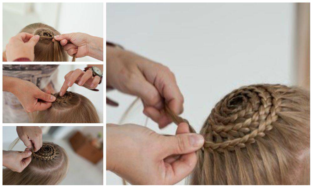 Пошаговая схема плетения “Улитки” на голове