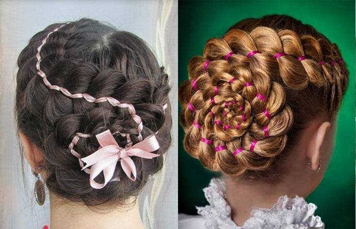 - С косичкой. Плетение украшает ракушку и делает прическу оригинальной. Можно сделать 2 боковых косы или выполнить «колосок» с одной стороны, от темени до затылка.