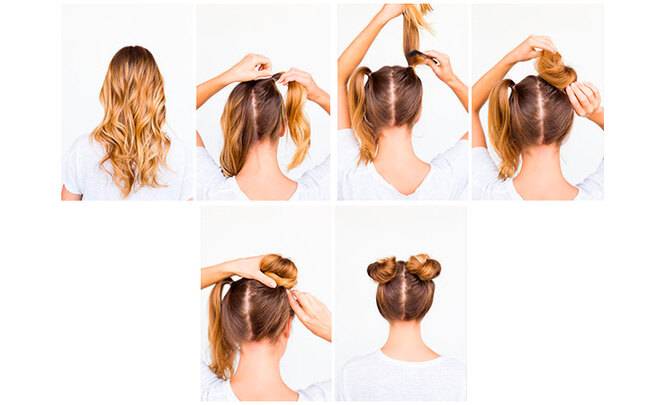 Собранные наверх волосы — это удобно и практично, по крайней мере, если ты воспользуешься нашими инструкциями, как быстро сделать пучок. Запомни хотя бы несколько способов, и твоя прическа всегда будет в порядке. Как сделать пучок из волос до плеч? Раздели всю массу волос на прямой пробор, сделай два хвоста и заплети из них два жгутика, закрепив в конце прозрачной резинкой.