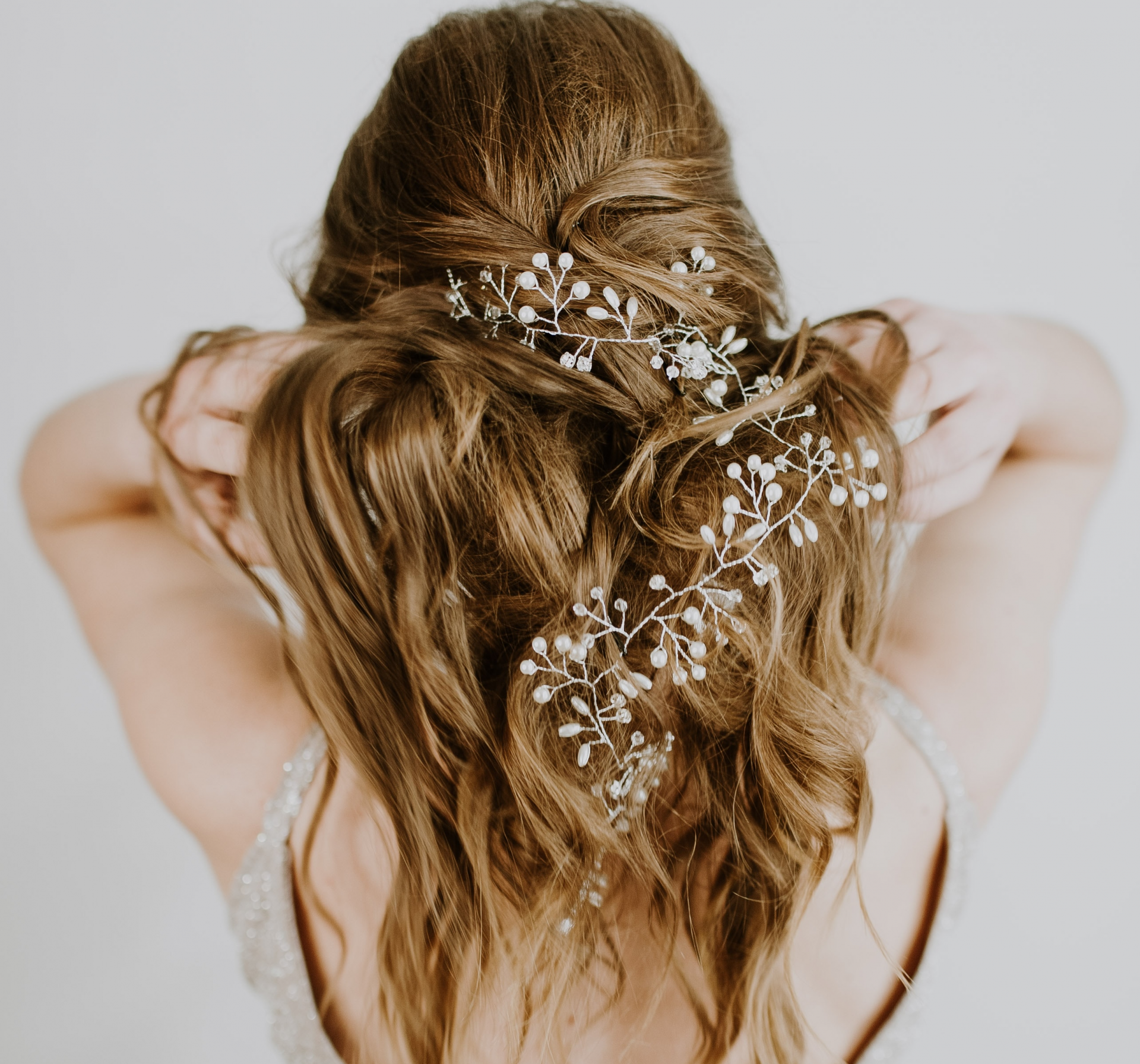 - Локоны разложите вокруг пучка и закрепите шпильками.