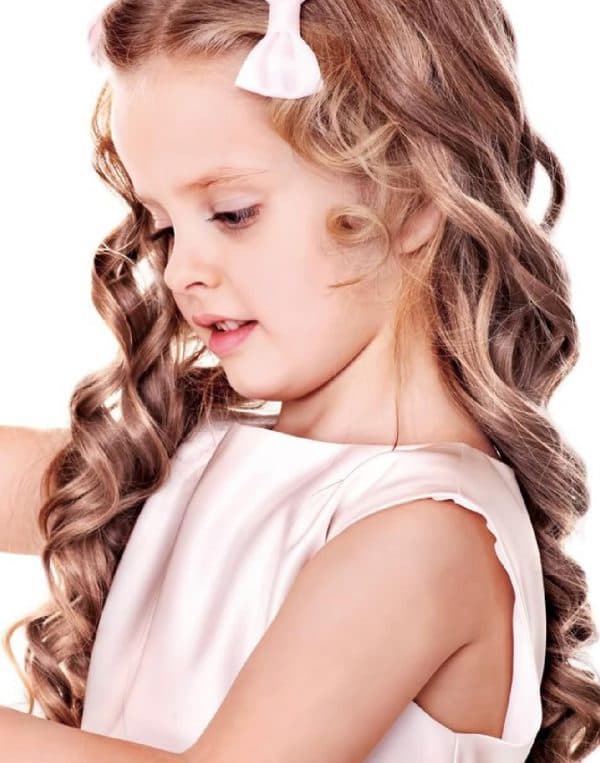 В самом начале прошлого столетия эталоном модной прически считались тугие длинные локоны, при укладке которых не прибегали к расчесыванию, чтобы сохранить их идеальную структуру. Для выполнения подобной прически волосы девочки, предварительно обработанные укладочной пенкой, следует накрутить, используя бигуди среднего размера.