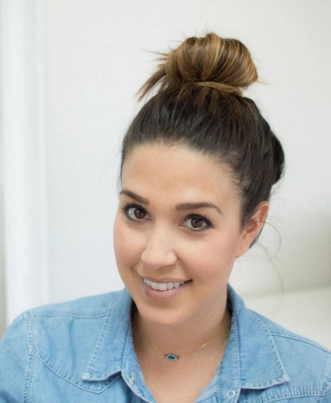Пучок фиксируем толстой мягкой резинкой. Чем влажнее вы соберете волосы, тем больше завитка вы получите.
