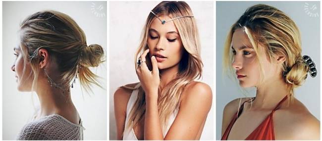 Для причесок в стиле бохо используется множествоаксессуаров, как покупных, так и сделанных своими руками. Уже упомянутые выше ободки прекрасно дополнят любой бохо-образ. Также актуальны различные ленточки, тесемки, перья, цветы, заколки.