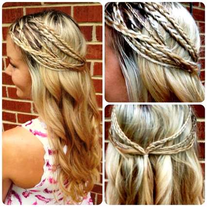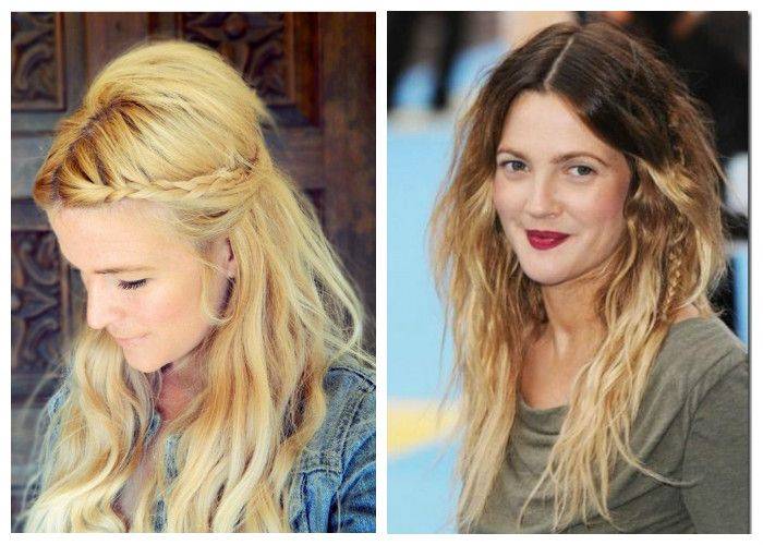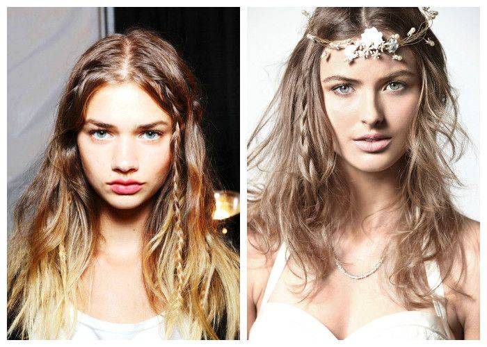 Ели волосы длиной ниже средних, их обладательница вольна сотворить любое богемное произведение. Варианты такие: нетугие локоны с вплетением косичек, венок из кос, бохо-косички и пучки на распущенных волосах.